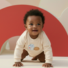 Featuring a smiling milk carton and cookie graphic, this romper is hand-printed in the USA on ultra-soft organic cotton French terry. Designed for comfort, stretch, and easy changes, it’s perfect for everyday wear and Valentine’s gifting.