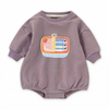 The relaxed bubble silhouette provides room for movement, while snap closures make diaper changes quick and easy. Ribbed trim at the neckline and cuffs ensures a comfortable fit that stays in place throughout the day.